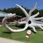大きなクワガタのモニュメントが玄関前で私たちをお出迎えします。これは映えるやつ。みんなでひとしきり大型クワガタを愛でてから、玄関に向かいます。