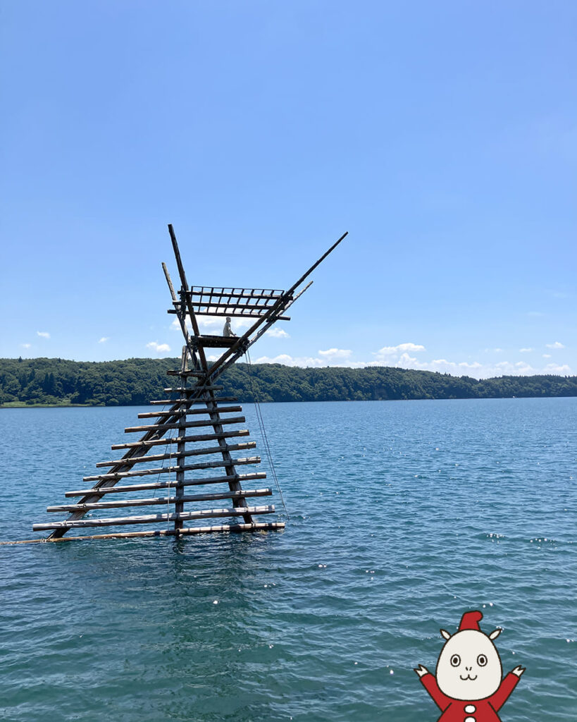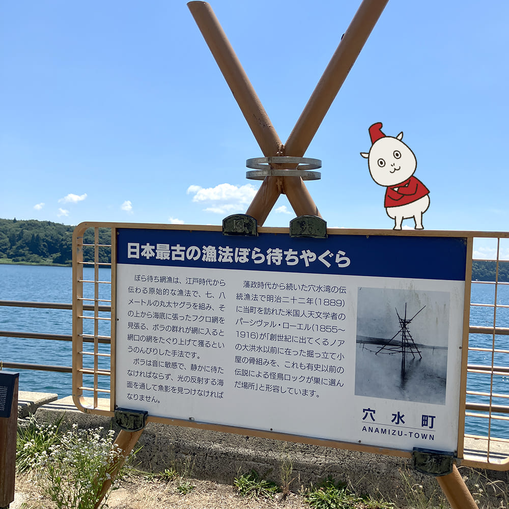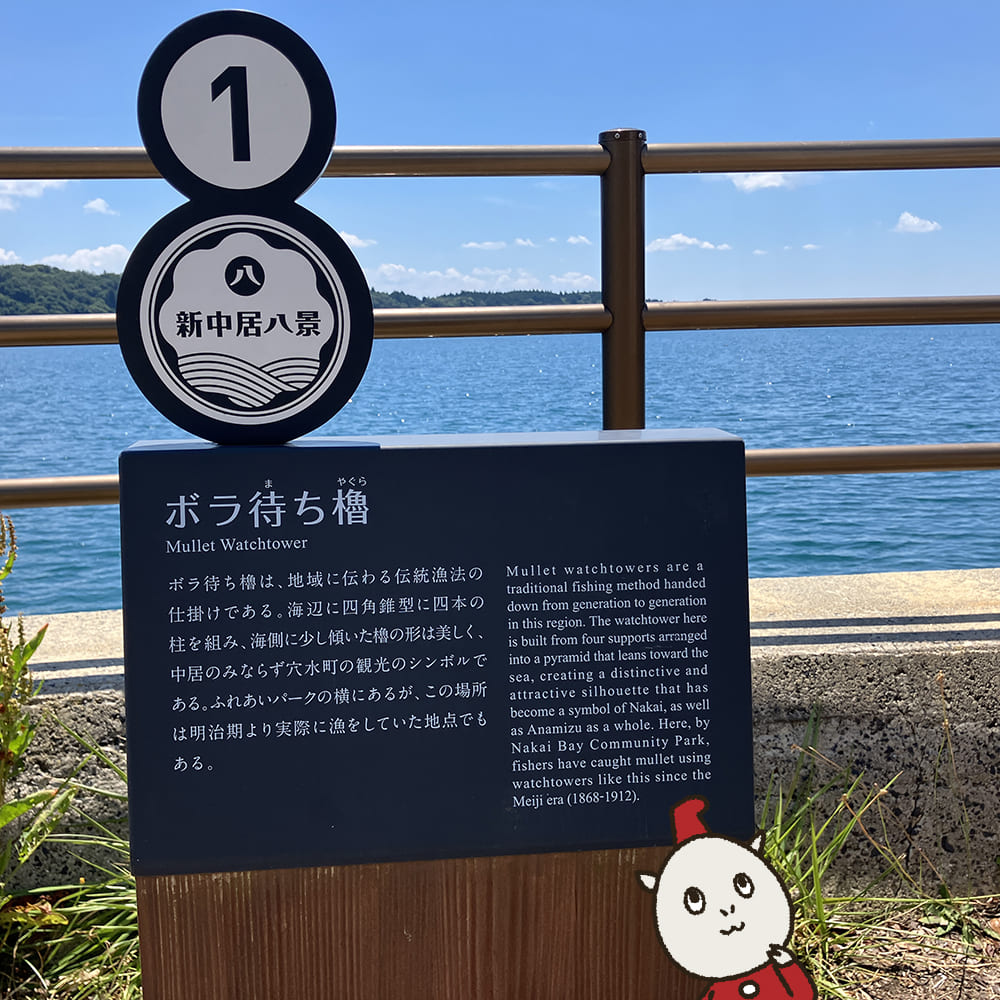 江戸時代から伝わる伝統漁法である「ボラ待ち網漁」で使われる櫓を復元したものとのことです。