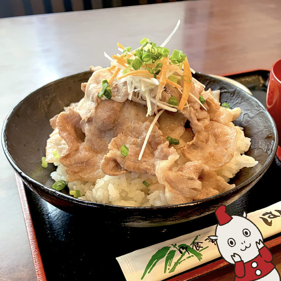 能登特産の豚肉「αのめぐみ」を、能登のいしりと珠洲の天然塩で焼き上げた丼です。まさに能登づくし♪